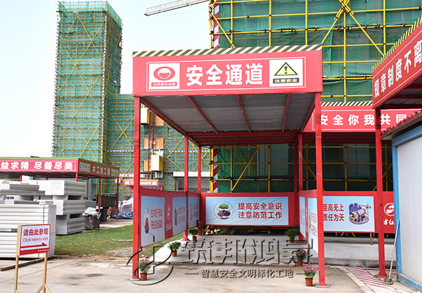 安全通道,施工現(xiàn)場實(shí)行人車分流,主要人員出入通道搭設(shè)了專用安全通道,安全通道兩側(cè)設(shè)置宣傳欄,提升施工作業(yè)人員的質(zhì)量意識、安全意識。